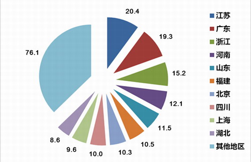 图5:直销销售额地区分布(单位:亿元)