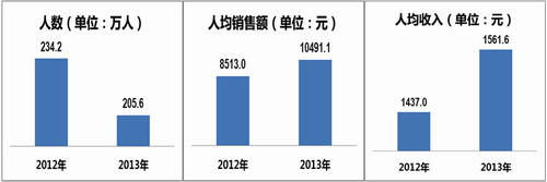 (四)人均销售收入增加。直销员人均直销销售额10491元,同比增长23.24%,人均收入1562元,同比增长8.67%。按企业划分,直销员人均收入最高的企业为67333元,最低为101.72元。