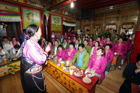 6月21日,告别了玉龙雪山和玉水寨,新时代卓越领导人来到了美丽圣地——香格里拉。好客的藏族同胞为大家敬献哈达,并邀请大家一起品尝酥油茶、青稞酒等藏族特色美食,欣赏藏族舞蹈。轻松和谐、温馨愉悦的氛围让大家充分领略到当地独特的风土人情。