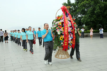新时代健康产业集团副总经理董永明和学员代表为烈士进献花圈