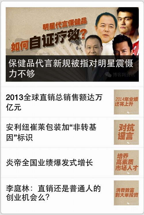 - 博客网微信今日看点:生活化是直销的一个方向