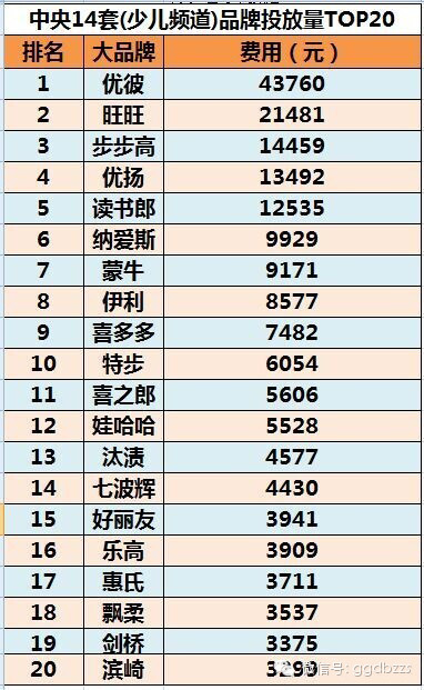 中央十四套三季度广告投放(刊例)TOP20