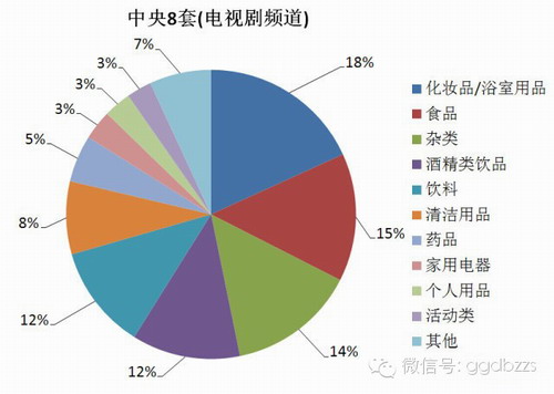 其中化妆品及浴室用品、食品、酒精类品牌投放占据前三甲,分别占据18%、15%、12%。