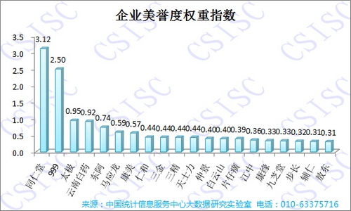在本期企业美誉度榜单中,同仁堂、999、太极三个品牌企业在产品创新和社会责任感等方面优于其他监测品牌,排行榜单前三。其中,同仁堂在品牌自身管理上表现更为突出,位居榜单榜首。云南白药仅以0.03的分值之差落后太极,排在第四位。榜单中第四名之后的品牌间差距变化趋势较为平缓,数值变化不大。
