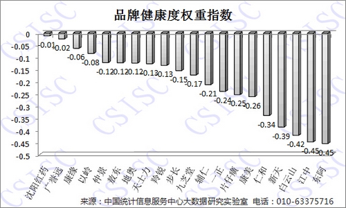 在品牌健康度榜单中,中药行业消费者的重点投诉主要在产品药效反映和质量安全方面。数据显示,沈阳红药的健康指数成绩优于其他监测品牌,位居榜单榜首。一些如葵花、云南白药等的知名品牌、“老字号”品牌,虽然其他各项指标表现良好,但在此项指标受负面影响侵蚀严重,未能在榜单之列。