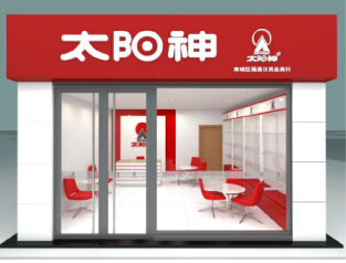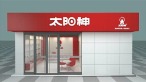 门头规范包括红色背景,白色“太阳神”字样和店铺门牌。而根据店铺大小不同,以50平方米的形象店为例,其形象规范主要包括展厅和培训室两个区域构成;100平方米的店铺形象规范主要包括展厅、办公室、理疗室和培训室等区域的规范构成。
