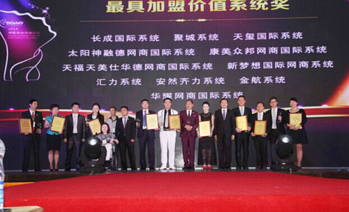 获得直销人嘉年会2014全球直销生态榜之最具加盟价值系统奖的是汇力系统、金航系统、安然齐力系统、长成国际系统、聚城系统、天玺国际系统、新梦想国际网商系统、华耀网商国际系统、康美众邦网商国际系统、太阳神融德网商国际系统、天福天美仕华德网商国际系统。