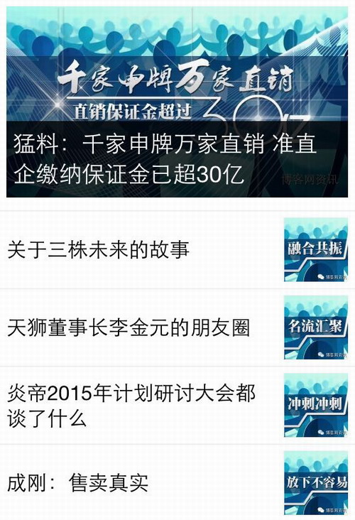 汇聚中国直销行业声音,直销博客网近期推出了“博客网资讯”微信,欢迎各位网友关注。您只需要打开微信,在朋友→添加朋友→查找微信公众号→输入“博客网资讯”或“dsblognet”,查找→点击关注就OK了。把握行业风向,只需用您的手机扫一扫,博客网资讯将为您提供最有价值的讯息。
