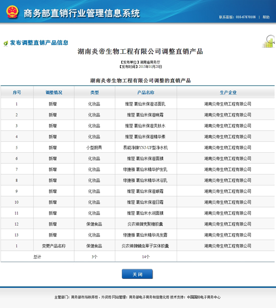 商务部发布炎帝直销产品调整 新增13个产品