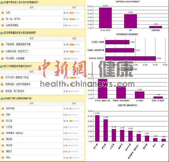 保健品小调查结果对比图:左列为中新网调查数据,右列为第三方调查公司数据