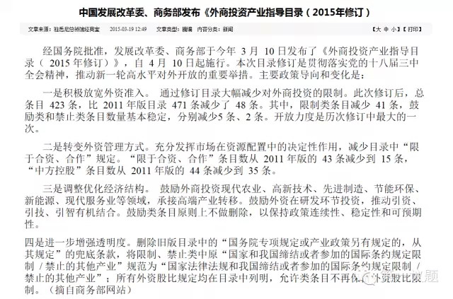 近日国家发改委、商务部对外发布了《外商投资产业指导目录(2015年修订)》(以下简称《目录》),将备受关注的直销列为非限制类项目。《目录》将于4月10日起施行。