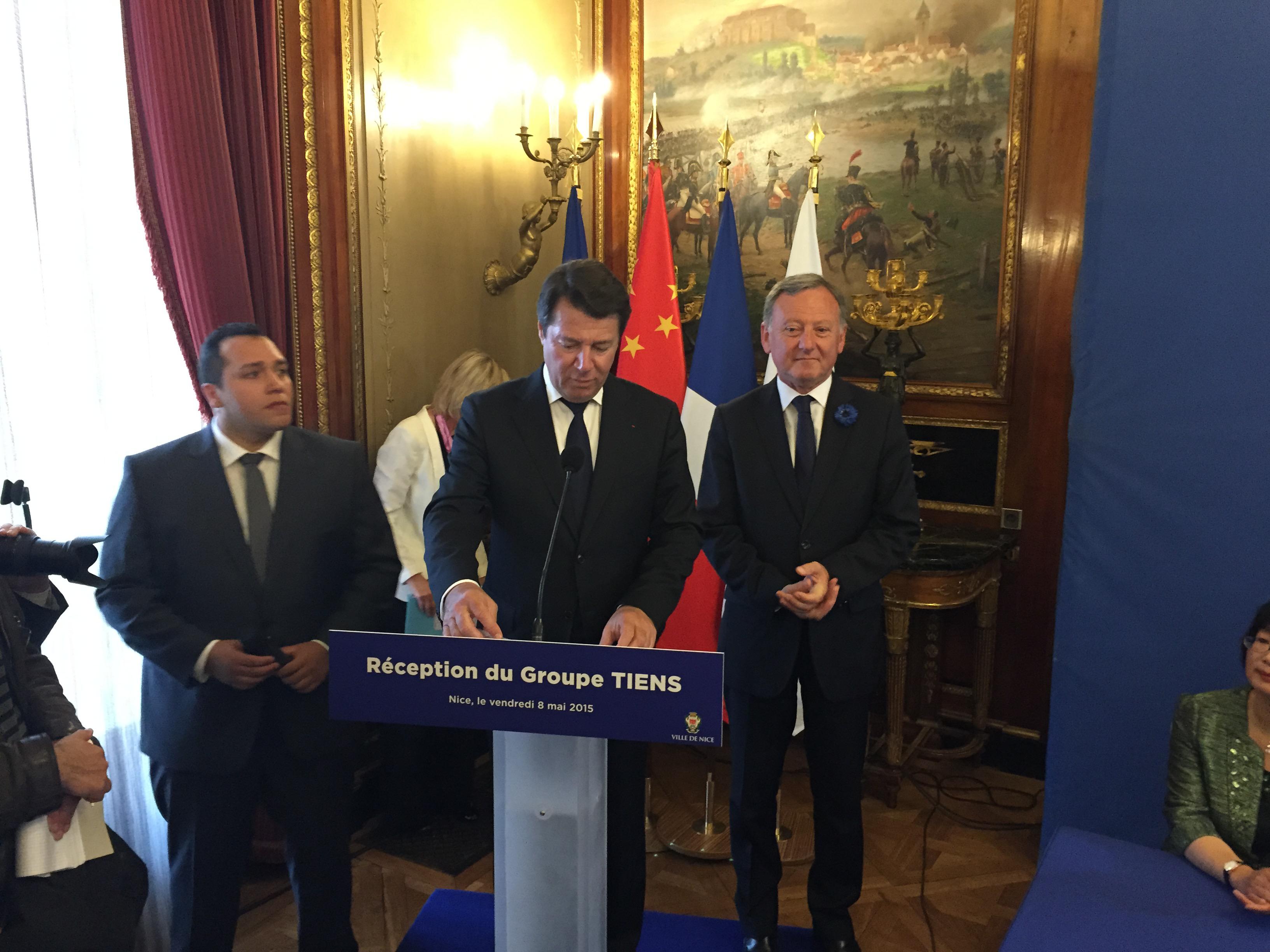Christian ESTROSI市长致辞中表示,感谢李金元先生与天狮集团在西班牙、英国、意大利等众多国家的邀请中,将此次天狮20周年系列活动的举办地定在尼斯,这是尼斯的幸运与荣幸,这是尼斯乃至欧洲历史以来单团规模最大的一次旅游接待,更是中法建交50周年来最大规模的文化交流盛会,并表示5月8日-9日将成为尼斯的“天狮日”。天狮在欧洲很多国家取得了非常优异的成绩和巨大的品牌影响力,并致力于国际间文化交流,积极推动健康医疗和天狮国际大学等各项社会公益事业,是一家极具社会责任的优秀企业。尼斯市政府非常重视此次活动的举办,将为天狮提供最优质的服务和最安全的保障,鼎力支持此次盛事的成功举办。同时也感谢媒体记者对活动的关注,希望媒体对此次象征中法友谊的盛会做好宣传报道,让更多的人关注尼斯、关注天狮。浪漫的蔚蓝海岸已张开热情的怀抱,尼斯人民将与天狮人共同见证中法交流合作的历史性时刻,共同谱写中法友谊新篇章!