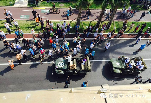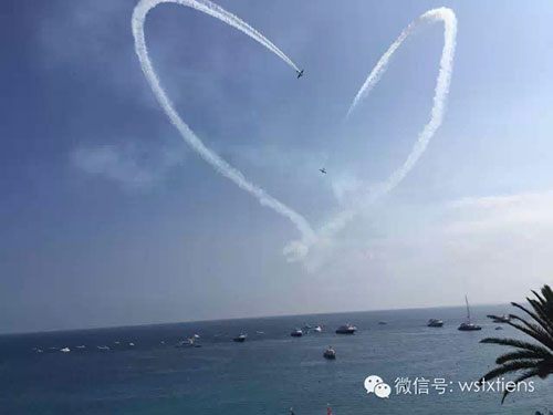 李金元董事长、白萍总裁以及天狮VIP贵宾乘坐由70辆二战时期古董军车组成的车队进行活动检阅,并登上豪华的游艇方阵沿尼斯海岸畅游航行,尼斯市政府安排的P-51野马式战斗机领衔的飞机编队呼啸着掠过长空,为本次中法文化交流系列活动助兴。当飞机在尼斯的蔚蓝天空画下象征中法友谊的巨大心形图案,震撼的场面让人更加深刻的感受到“和平与发展”的时代主题。