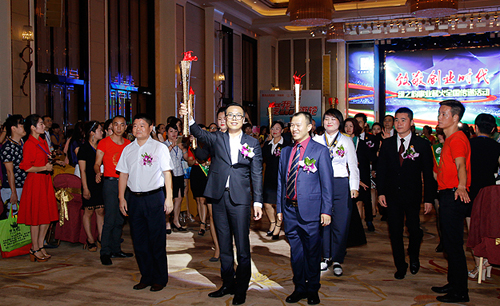 2015年9月6日,绿之韵创业薪火全国传递活动第九站在广东东莞康帝国际大酒店盛大举行。绿之韵集团(全球营销中心)营销副总裁李继前先生,绿之韵集团广东分公司经理梁涌先生,绿之韵碧波庭元一伟业创始人廖龙飞先生等,与来自海内外的1000多名绿之韵的家人们共同聚首见证这一重要时刻。