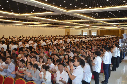 表彰大会在吉林东升伟业总部商学院二楼大厅隆重举行,公司于爱东董事长、谢蕙竹总经理以及公司全体领导班子;“大晟泽安”商务创业联盟王一霖先生以及系统全体领导人;“大晟泽安”商务创业联盟3000多名经销商代表参会。