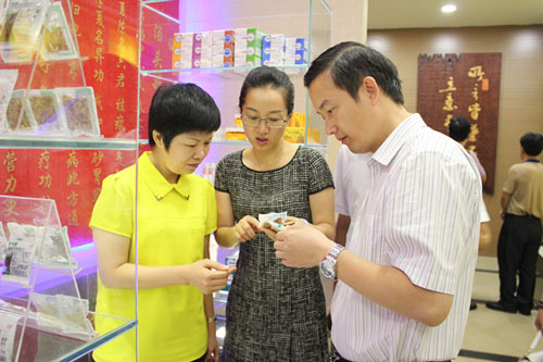吕燕梅区长在公司产品展厅了解康美中药饮片等产品