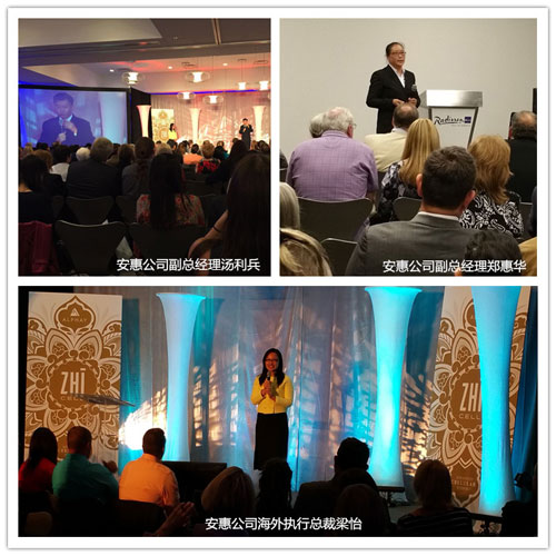 安惠公司副总经理郑惠华、汤利兵在会场和大家分享了安惠产品的研发理念以及全球安惠家人在江海系统的指引下,为“世界安惠,世代安惠”的企业愿景不懈努力和激情奋斗的故事。安惠公司海外执行总裁梁怡在现场阐述了推进海外市场的梦想和目标。她相信,安惠的海外市场会越来越广,产品也会越来越丰富;大家只要梦想一致,目标一致,就能创造奇迹与辉煌。