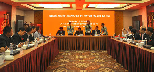 9月14日上午,青海省人民政府、人保资本投资管理有限公司、康美药业股份有限公司三方在青海省西宁市举行了《金融服务战略合作协议》签约仪式,青海省委常委、常务副省长骆玉林,人保资本董事长、总裁王慧轩,康美药业董事长、总经理马兴田分别代表省政府、人保资本和康美药业签署了协议。