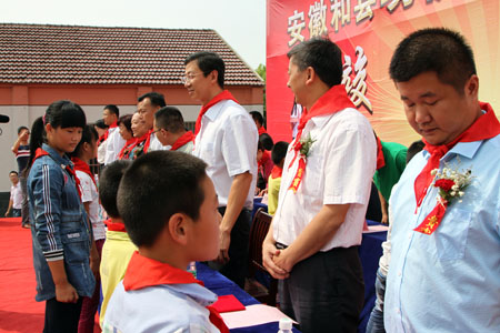 安徽省青少年发展基金会秘书长章旻,和县县委副书记易茂林、副县长王竹梅、教育局局长陈为根,团县委书记尹莉,功桥镇党委书记余高峰,新时代健康产业集团国珍市场发展咨询委员会委员、希望小学荣誉校长谢建君,新时代健康产业集团策划总监王宁,安徽分公司经理吕剑及300余名新时代人出席了落成典礼。