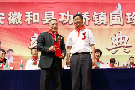和县教育局陈为根局长为谢建君先生颁发荣誉校长证书