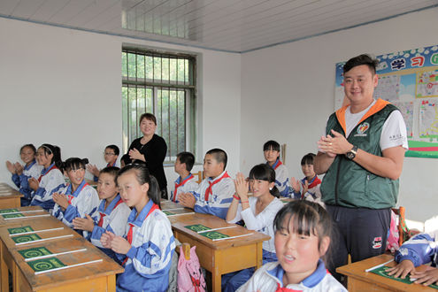 寰宇大使董波、孙旭伉俪与孩子们在一起