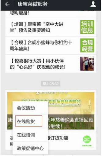 康宝莱微服务微信订购功能全新开通,从此小伙伴们可以在微信上直接订购货品了。