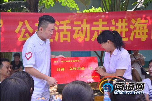 安利海南分公司给全校师生捐赠了一批爱心月饼及文体用品。