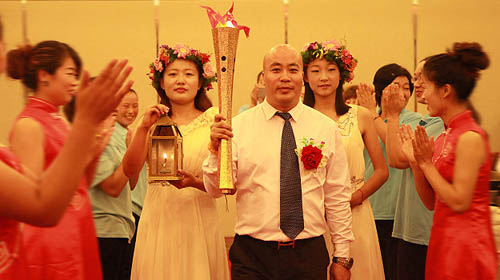 在全场热烈期盼下,山东分公司经理伍成辉手持火炬,缓缓登场,将从绿之韵发源地——湖南安化雪峰山明珠塔下取出的“绿之韵”火种传递到现场,传递到绿之韵山东市场德高望重的领导人张吉庆、徐继发先生与众合体系市场领导人徐志敏、王占红女士手中,熊熊燃烧的火焰聚焦了所有人的目光,温暖了所有人的心。随后,绿之韵国际商学院讲师姚雅闪亮登场,激情演讲,详细阐述了绿之韵和谐养生的健康理念,清调补衡的重要性,赢得了所有在场家人的好评,会场不时爆发出雷鸣般的掌声。