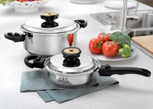 由于唯食帮锅具的蒸汽锁功能,使得在烹饪过程当中,在锅内形成半高压状态,所以可以借用食材本身的油脂来烹饪,从而达到减少油脂的摄取量。
