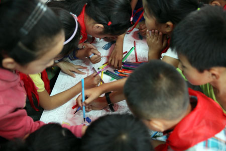 新时代人与孩子们一起描绘未来