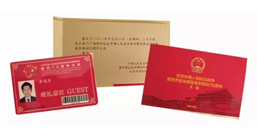今日,纪念中国人民抗日战争暨世界反法西斯战争胜利70周年大会在北京天安门广场隆重举行,金日集团总裁李冠华作为受邀嘉宾登上观礼台出席这一举国盛典,共襄盛举。