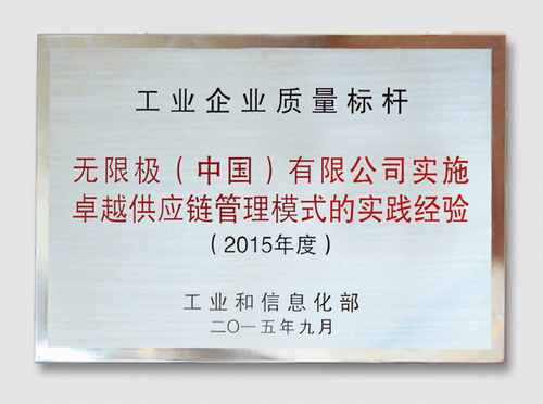 全国工业企业质量标杆企业的评比活动是由工业和信息化部主办,在国内工业界最具权威性和影响力的同类奖项。此次质量标杆评比标准非常严格,申报质量标杆企业最基本的要求是必须在近三年连续保持赢利,并且在诚信、质量、安全、环保等方面无违法行为和不良记录。经过质量管理专家组对全国众多工业企业进行评定,最终,公司以独创的卓越供应链质量管理模式,与华为、海信、伊利等33家企业一并获得“质量标杆”称号。