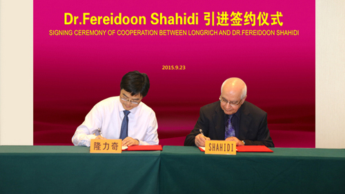 9月23日,隆力奇和国际保健品与功能食品学会会长Dr. Fereidoon Shahidi举行引进签约仪式,隆力奇全球研发中心总经理严泽民参加签约仪式。
