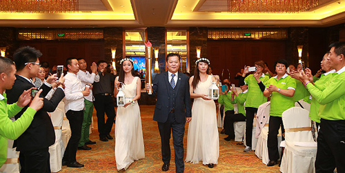 在大家振奋的呼喊声中,绿之韵集团执行总经理(全球营销中心)张力中走上讲台。他全面剖析了绿之韵未来的发展方向和理念策略,用生动有趣的语言和台下所有伙伴进行了互动。他不但为大家分析了未来经济发展方向,而且对绿之韵在今后的发展中应该如何应对经济潮流、更好地创造价值、实现梦想作出了详细的解答,让所有人都明确了目标,信心满满。同时,他还对绿之韵十二周年年会的亮点作了精彩的分析,年会上即将呈现的全新灯光、影音技术震撼全场,劲爆的明星阵容让大家都心生向往。