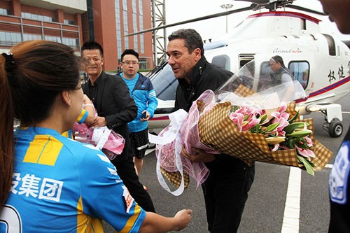 9月28日14时,权健集团董事长、天津松江足球俱乐部、大连权健(女足)足球俱乐部总经理束昱辉陪同巴西足坛名帅卢森博格,乘坐直升飞机空降团泊足球场以及训练基地考察,天津松江足球俱乐部常务副总经理邓飞,副总经理李玮峰全程陪同考察。