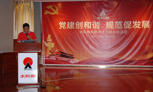活动开始,太阳神甘肃分公司负责人王长雄作出精彩讲话,他指出,太阳神人秉承公司企业文化,提供优质产品的同时致力于回馈社会。在未来,太阳神将尽可能地关爱当地市场发展,和党组织保持一致,乘风破浪,扬帆起航。