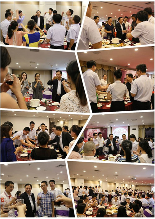 随后,中秋家宴正式开始,空气中飘散着瓜果与鱼肉菜肴的味道,众人尽情享用美酒佳肴,共度温馨、团圆之夜。董事长李仲树说:“我们是相亲相爱的一家人,中秋家宴,希望大家吃好喝好玩得开心”,总裁李冠华也用微信为大家传达了祝福。觥筹交错间,家人们表演尽兴,其乐融融,喜笑颜开。