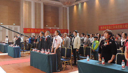 下午两点,会议在激情昂扬的《绿之韵战歌》中拉开了序幕。绿之韵隆钲系统优秀经销商代表王惠玲、刘进春、刘宪民、隰向芳、李凤霞、张洪、马秀玲、荆艳梅等昂首阔步走过满载荣誉的“星光大道”,在人们的欢呼声中挥手致意,闪亮登场。接着,全体起立,升国旗、唱国歌,共同祝福祖国越来越好!