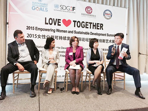 纽约时间9月22日,第四次世界妇女大会召开20周年之际,由联合国千年发展目标基金、中国妇女发展基金会、美中友好协会共同主办的2015女性公益可持续发展国际论坛暨女性创新艺术展,在美国联合国总部举行。