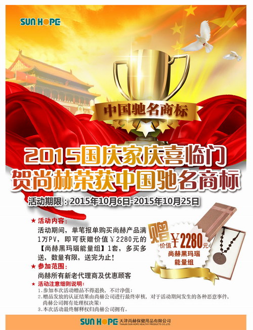 尚赫荣获中国驰名商标 好礼相送活动来袭