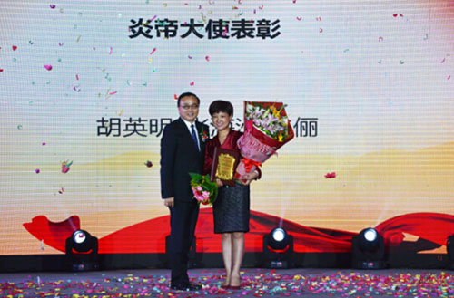 在激动人心的市场表彰环节,达成新澳旅游,轿车奖,以及得到晋升的各级市场伙伴接连接受荣耀表彰,总代,董事,星级董事的激情事业分享让人热血沸腾,特别是炎帝第二位大使胡英明女士的荣耀奋斗历程分享,让在场伙伴坚信在炎帝的平台上只要肯努力,终将有一天麻雀也能变凤凰,现场的气氛节节高涨,不断升温。