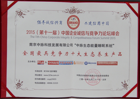 9月20日-21日,“第十一届中国企业诚信与竞争力论坛暨首届中国互联网金融创新发展峰会”在北京人民大会堂隆重召开。中脉科技受邀参会。为表彰中脉推动中国健康行业发展的突出贡献和诚信经营管理的优异表现,论坛组委会授予中脉“信用中国•健康行业最具竞争力十大诚信品牌”荣誉称号。与此同时,中脉旗下产品中脉生态能量睡眠系统也凭借卓越的品质和生态健康的理念脱颖而出,获颁“全国最具竞争力十大生态养生产品”殊荣。