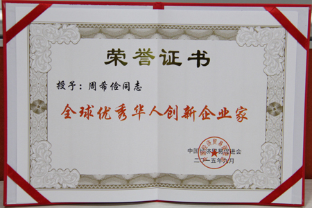 中脉周希俭荣获全球优秀华人创新企业家称号