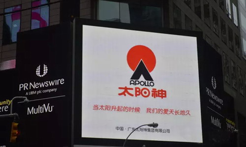 太阳依然升起,只是这次太阳从西方升起。作为中国名片之一的太阳神,如同一轮红日,冉冉升起在纽约时代广场的大屏幕上。