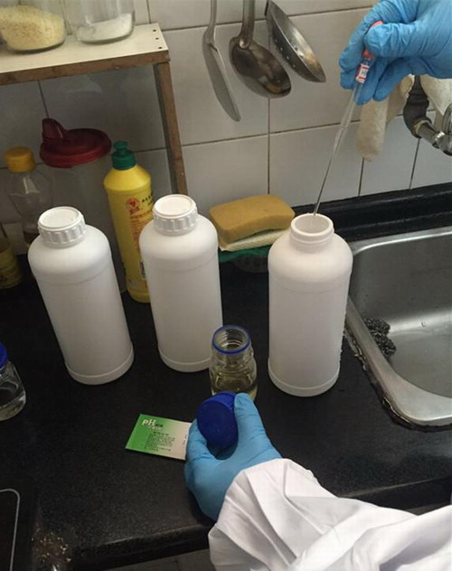 在北京的一户居民家里,清华大学建筑环境检测中心技术人员采集了3瓶清水后密封样品瓶并放入保温箱内低温保存。随后的2天内,技术人员会将样品发回实验室分析。据中脉相关负责人介绍,水质的检测项目包括铅(Pb)、亚硝酸盐、氮、总硬度、氮、铝、三氯甲烷、铁、灭草松等。室内空气测试项目则包括温度、相对湿度、颗粒物PM2.5、甲醛、苯等。