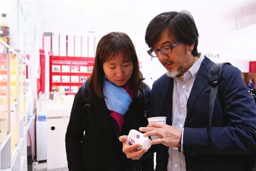 在产品展示区,小泽尚志社长一行参观了集团以茶元素为核心开发打造的茶化妆品、茶保洁品、茶保健品等系列产品。大家对这一全新的茶元素产品表现出浓厚的兴趣,纷纷拿起产品仔细查看,并对其中所含的茶有益成分进行交流、讨论。