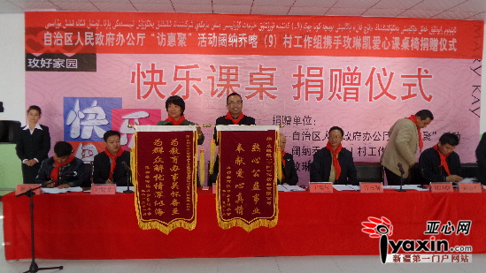 自治区人民政府办公厅“访惠聚”活动阔纳乔喀(9)村工作组携手玫琳凯课桌捐赠活动现场