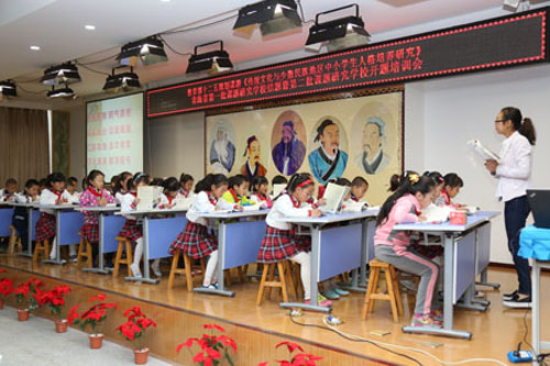 上午9时,仪式正式开始。在近4个小时的课题汇报环节,与会领导和专家通过观摩传统文化课堂教学、聆听当地师生课题心得分享、欣赏国学诵读展示节目等方式,全面检验了开展课题研究以来所取得的丰硕成果,直观感受了传统文化对促进中小学生道德品行、文化素养、美学积淀提升方面的巨大作用。活动现场,孩子们全情投入、精彩纷呈的经典诵读节目令与会人员赞叹不已。