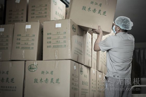 经过一系列的检验检测以及分拣程序,灵芝终于可以打包入箱了。