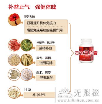 无限极灵芝皇胶囊运用现代高新技术,提取赤灵芝中的有效成分——灵芝多糖,并根据中医理论,选取多种传统植物成分科学配伍,调节免疫,延缓衰老,辅助抑制肿瘤。